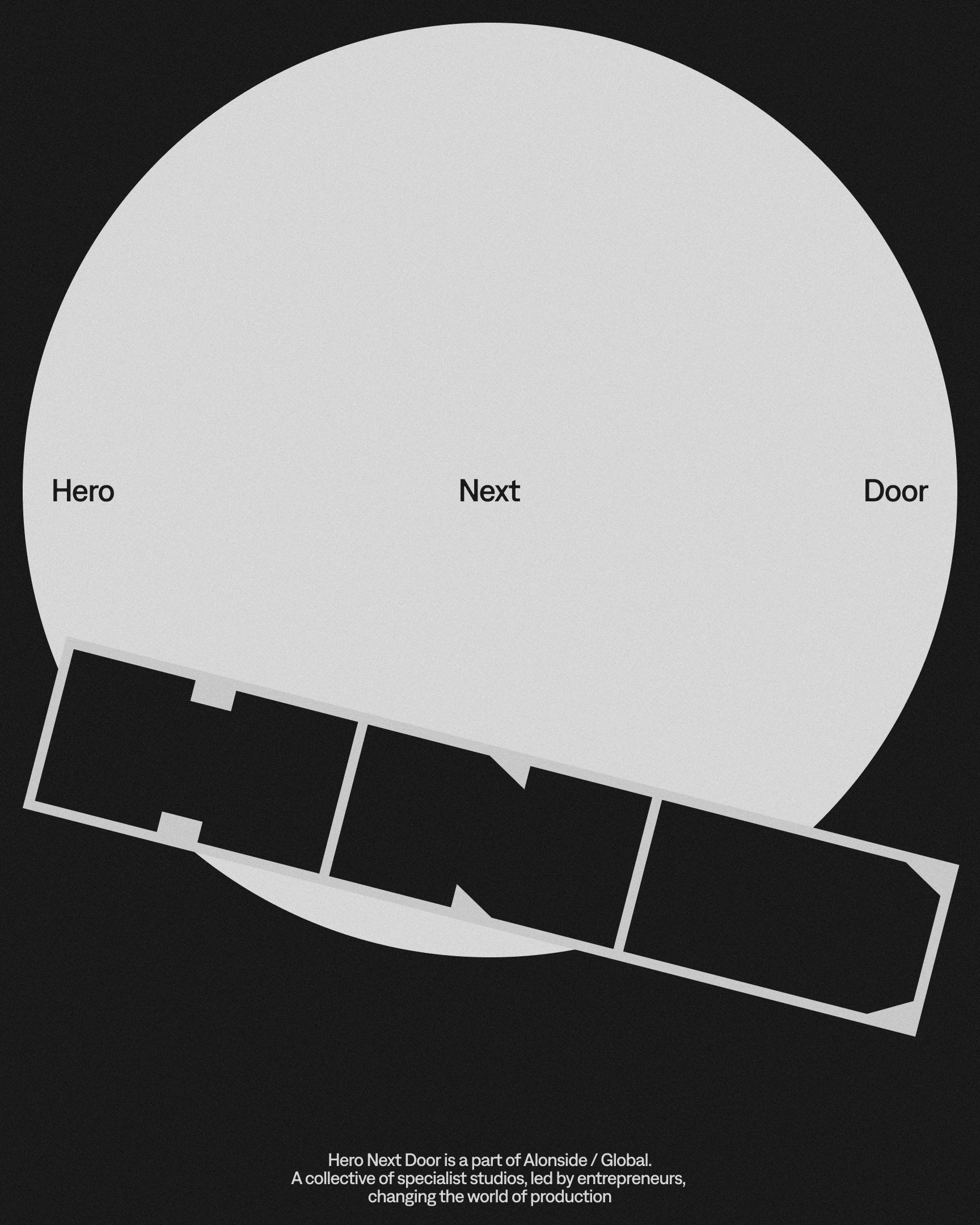 Built around the metaphor embedded in its name, Hero Next Door’s visual identity translates the idea of a door as both threshold and reveal, a bold form that opens to expose what lies behind it. Conceived as a mask, the logo becomes a solid, adaptable block that suggests action, framing, and unveiling. Its strong, adaptable structure allows the mark to shift seamlessly across touchpoints and formats while maintaining impact. A clean, minimal layout system creates space for 3D imagery and motion content to take center stage as the brand’s true protagonist.